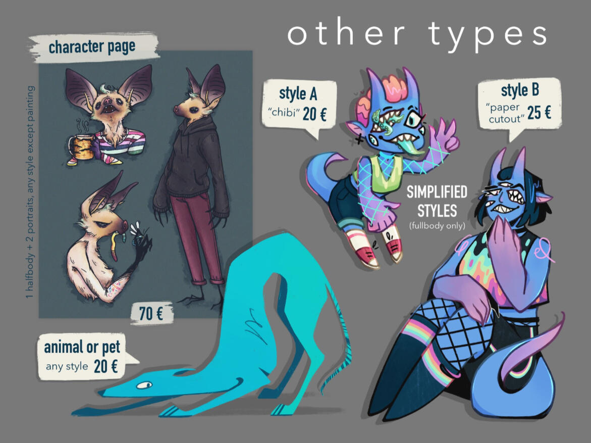 these prices are for personal, non-commercial commissions only. commercial prices will be higher and can be discussed with me directly
